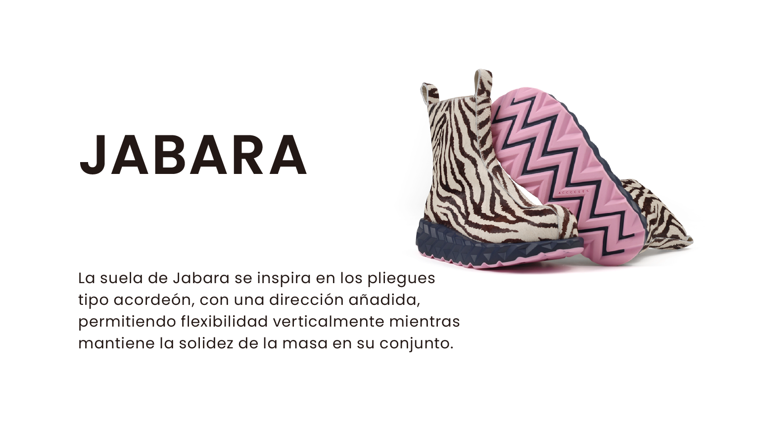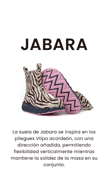 Una hazaña de la ingeniería inspirada en el arte de la papiroflexia, una suela con pliegues tipo concertina que aporta flexibilidad sin comprometer la integridad estructural ni la rigidez de la JABARA.