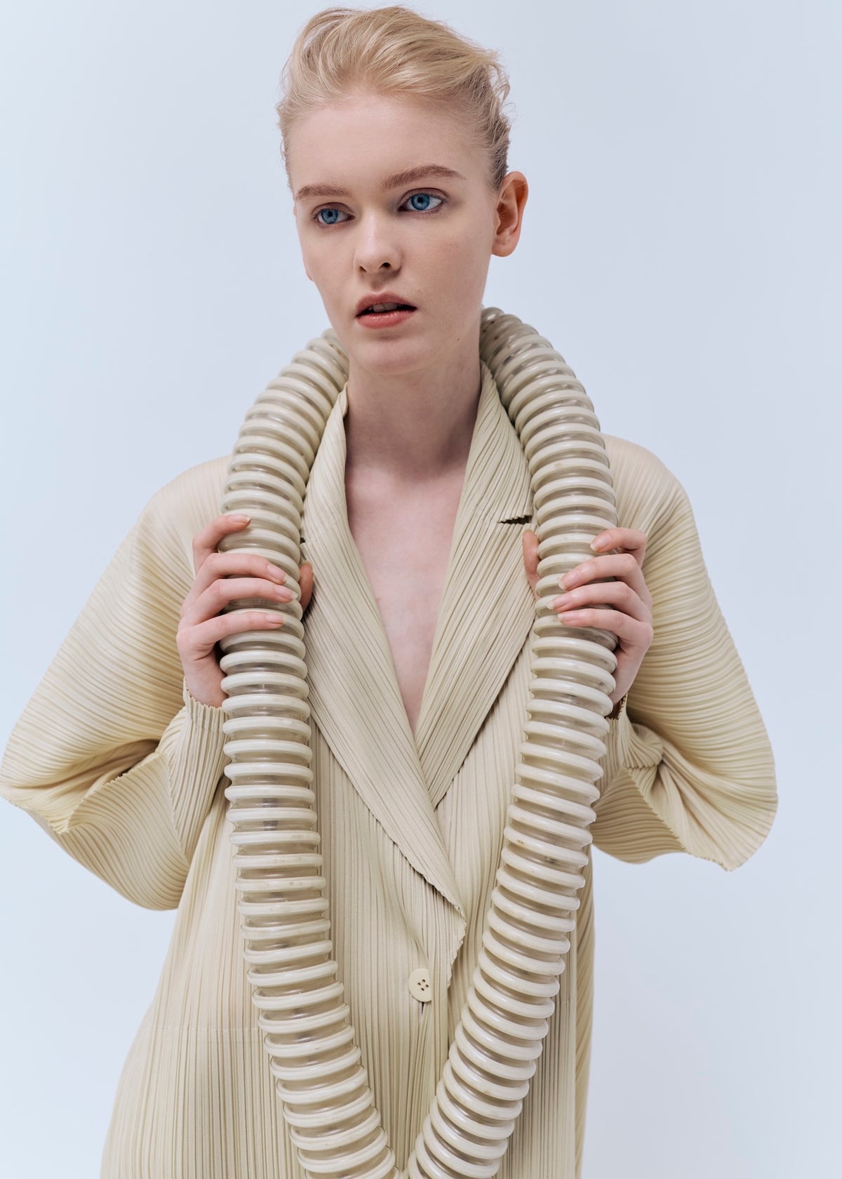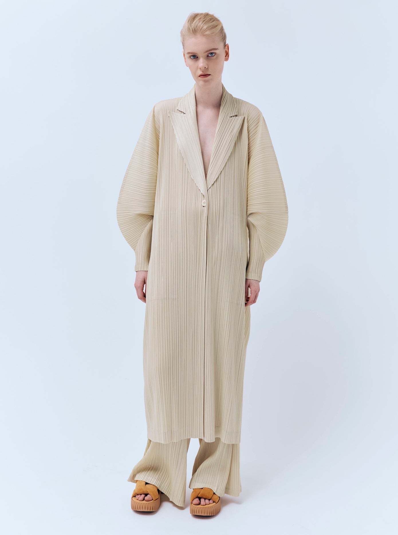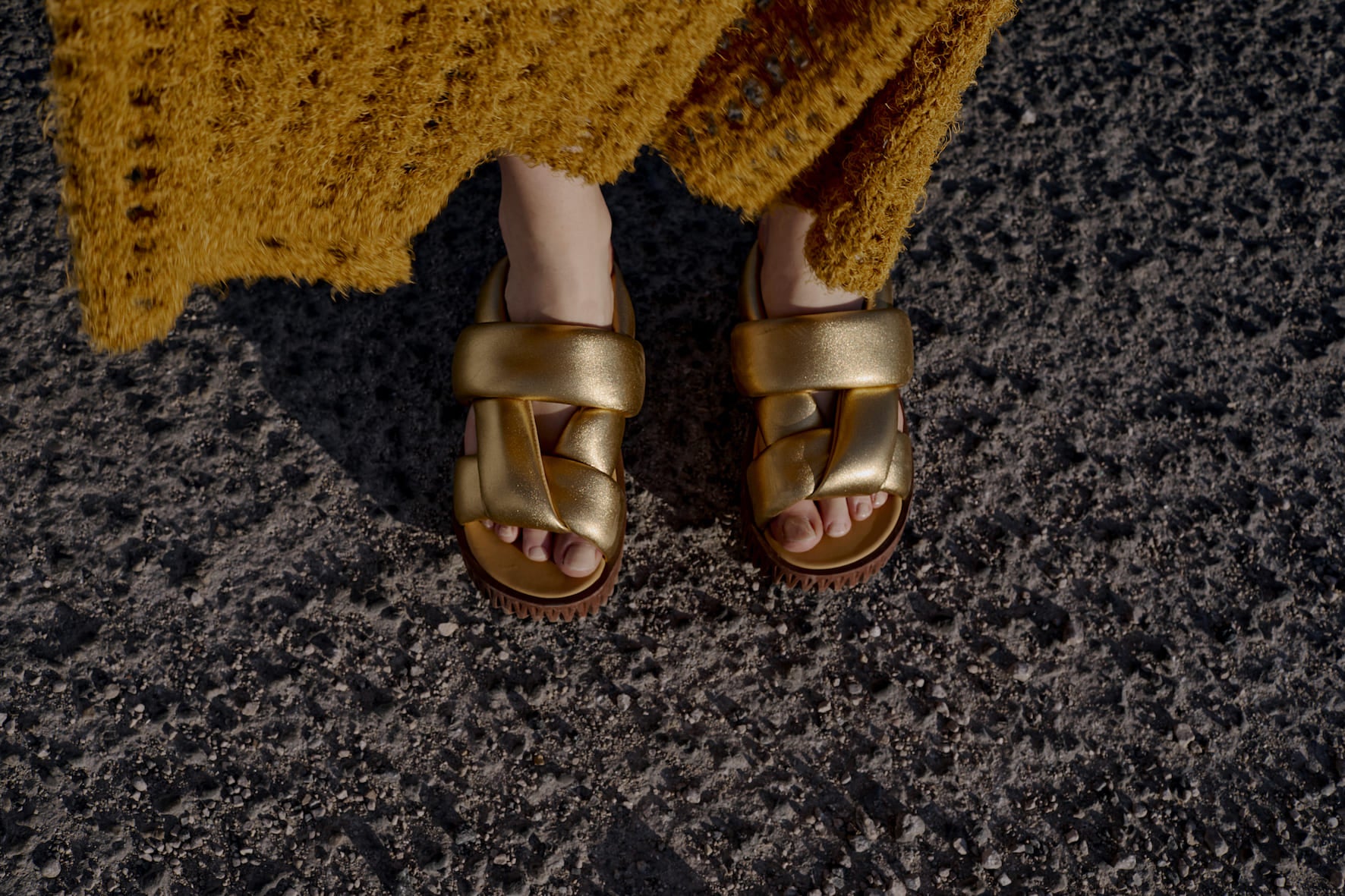 An avant-garde reimagining of traditional wooden clogs, PLIA exudes a fashion-forward appeal with carved out blocks to create a lightweight, yet voluminous platform base. The intricate ribbed texture of its base speaks to the organic characteristics of dandelion heads, mushroom gills and tree bark. Made from foam-rubber, this design is an exquisite, modern interpretation of a classic silhouette.