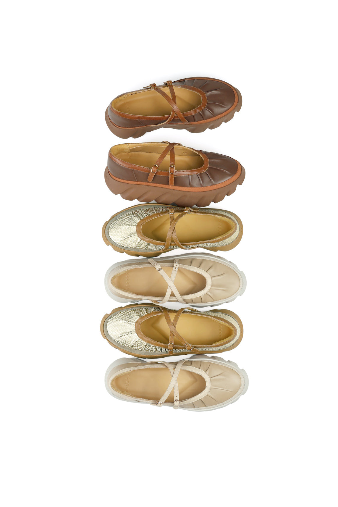 With a soft, yet structured construction, BOM’s ballerina-inspired style is complemented with the use of supple sheep leather. Its cow leather binding and delicately gathered details bring a graceful flair to everyday dressing.